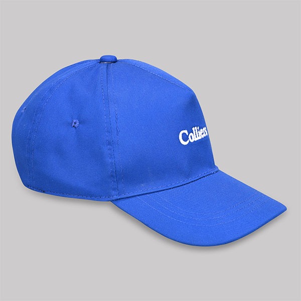 100% COTTON GABERDINE CAP IN ROYAL BLUE WITH COLLIERS LOGO EMBROIDERED WITH ADJUSTABLE STRAPS. ONE SIZE FITS ALL